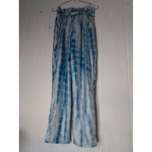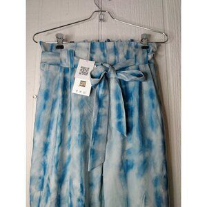 Grace Karin Womens Sz S Tie Dye Blue Paper Bag High Waist Cropped Pants Belt NWT