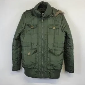 DOLLHOUSE Hooded Bomber Green Puffer Jacket Size Medium