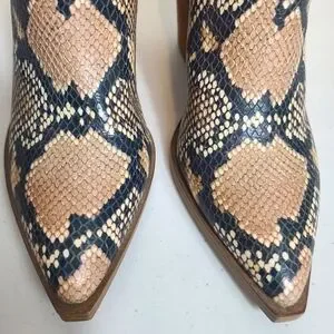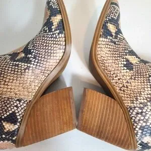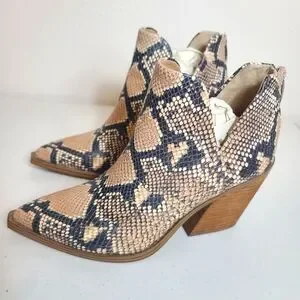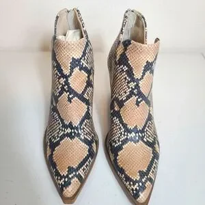 STEVE MADDEN Camryn Snakeskin Booties. Back zipper closure. Leather upper. Wedge heels.