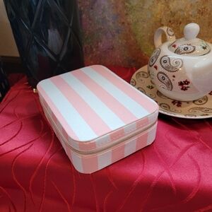 Vintage necklace with 9 pearls. I am unsure of the gold or pearl quality since I do not see any markings or stamps. The gold seems sturdy without tarnish, and the pearls show minimal signs of age. This was my great Grandmother's, so I think it's about 1920s or 30s. However, I am not a jeweler, so I would hate to claim something untrue about this beautiful piece of jewelry. I know it is gold in tone, and the gems have a pearl like quality. Comes in travel jewelry case.