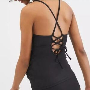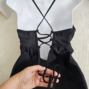 Motherhood Maternity BEACH BUMP salloped Tankini Top UPF 50+ BLACK