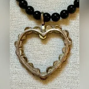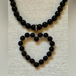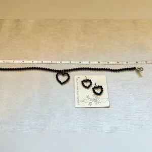 Vintage onyx and Sterling silver heart necklace/choker With matching heart earrings. Sterling silver toggle closure on necklace. French wire earrings. Gorgeous!
