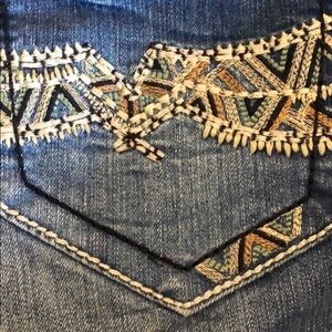 Sammie boyfriend style 2 front pockets 2 back. Embroidered detail on front and back pockets.