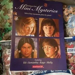 American Girl Mystery Puzzles. 4 puzzles featuring kit, Samantha, Kaya and Molly. 1200 pieces. 3 puzzles unopened, 1 opened but maintain nicely in a Ziplock bag. 8+. Comes with 16 page booklet