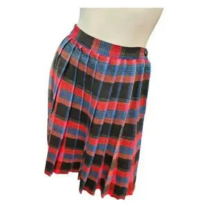 Vintage Red Wool Pleated Skirt XS 23 Plaid