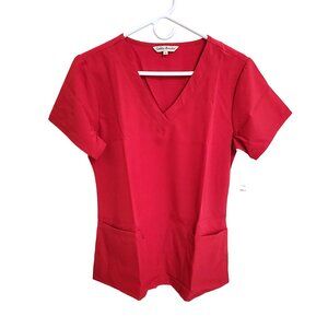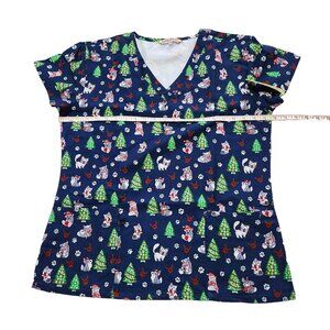 NEW Two Christmas Scrub Tops Red and Blue with Christmas Tree Cats Dogs Sz M