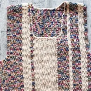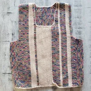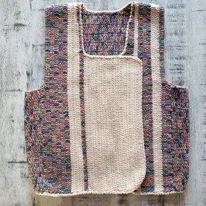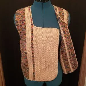 Handmade Crochet Vest - Multi color: Green, Tan, Navy, Mauve, Cream