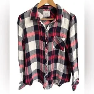 RAILS Women’s Hunter Plaid Button-Up Long Sleeve Shirt Red White Blue Size M