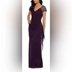 Beautiful purple ruched gown by Xscape