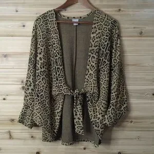 Chico's Top Womens XL Leopard Print Tie Front Shawl Size 3