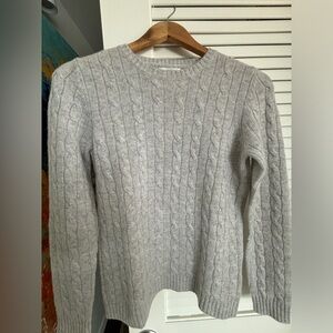 Beautiful 100% cashmere cable crew-neck sweater from Tyler Boe. Soft gray.