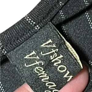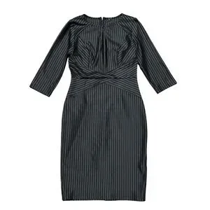 Vfshow Vfemage Pinstripe Midi Pencil Dress. Size Medium. In excellent condition without tags. Long sleeve fitted pencil dress with waist cinch detail for a flattering fit. Front quarter zipper and back zip closure. Back split. Lightweight and unlined.
