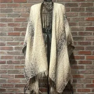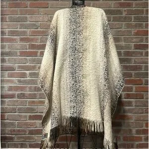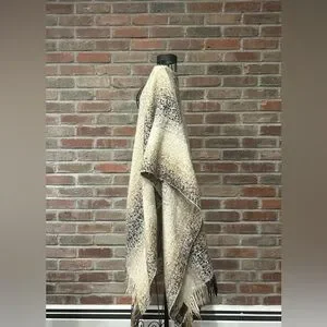 Beautiful & Warm One Size Fits All Cape/Poncho, Molina by Jimmy Hourihan Bought In Ireland. Cream, tan, brown and black, 34 inches long including fringes. Looks great by itself or over a coat. Minimal wear, great condition.