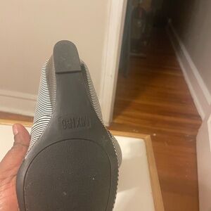 White and black striped wedge shoes