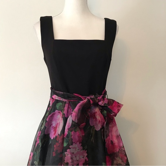 Eliza J Floral Black Pink Sleeveless Square Neck Tulle Maxi Dress 8
