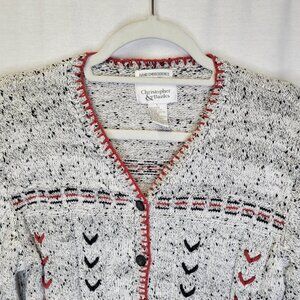 Christopher & Banks Large Cardigan Sweater Black Red White Hand Embroidered