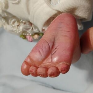 This newborn baby looks to be made as if she was just born! She looks so real! Her head of hair looks like she was just born as well as shown in pictures! Her little outfit was also handmade just for her! Some additions to a cute onesie! She will be perfect to add to any baby collection of yours or for a friend! Please see all pictures and ask any questions to avoid any unnecessary returns! Perfectly painted and looks like she even has real veins in her feet!!