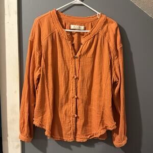 Free People Moving Mountains Oversized Shirt Long Sleeve Raw Hem Size S