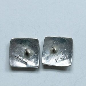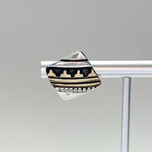 Vintage Tommy Charlie Navajo Sterling Silver Gold Modernist Earrings. Sterling silver and gold vermeil earrings feature modernist design that could be mountains or buildings. Earrings are 16 x 16 mm. Marked Sterling and signed TC. 5g.