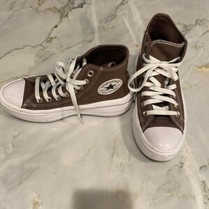 Women’s cute chocolate brown platform sole Converse high tops, rarely worn
