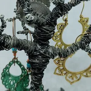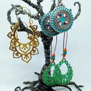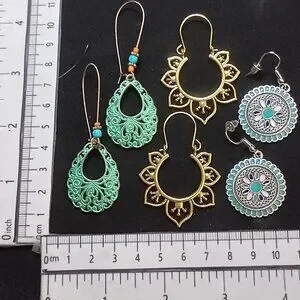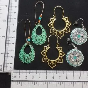 SALE! 3 PAIR EARRINGS, Ethnic SILVERY, BRONZE, PATINATED Blue Bunny BOHO BAUBLES