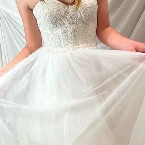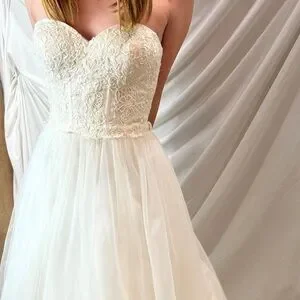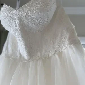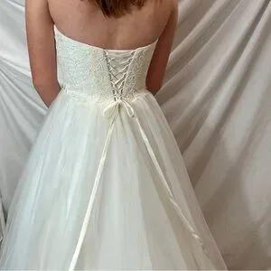 David’s Bridal Gown Wedding Dress Lace Corset Tulle Princess style size 2 ivory