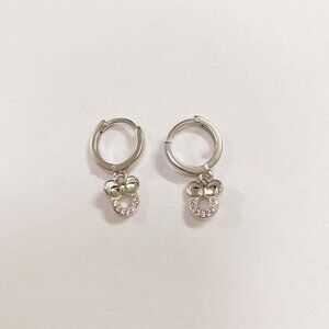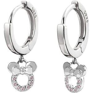 Women Silver Small Mouse Dangle Hoop Earrings Sterling Cubic Zirconia Charm