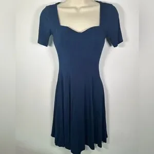 Elevate your wardrobe with this elegant and versatile navy blue dress from ASOS. Featuring a flattering sweetheart neckline and a fit & flare silhouette, this dress is perfect for a variety of occasions, from brunch to evening outings. The short sleeves and soft, stretchy fabric provide comfort while maintaining a stylish, feminine look.