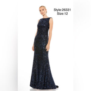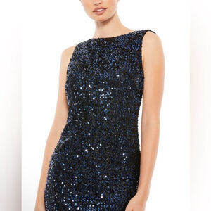 Cowl back boat neck sequined evening gown
