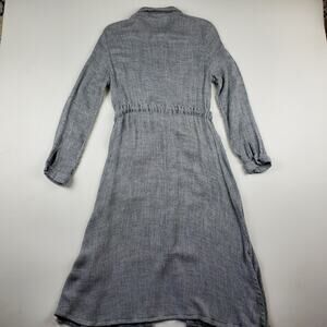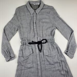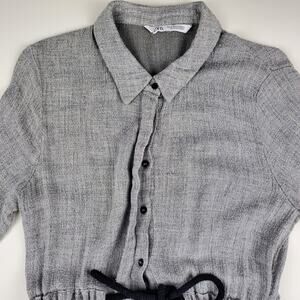 Zara Belted Shirt Dress Button Up Pocket Midi Gray Lightweight Women's Medium