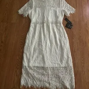 White lace midi dress with cut out details