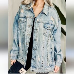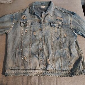 POL Oversized Studded Denim Jean Jacket Sz-L