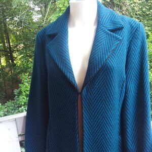 Wool Chevron Longline Trench Duster Blazer Jacket Women Blue Valerie Stevens 8
