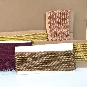 Group of 5 new different twist lip cords for drapery/upholstery projects. Perfectly new unused condition. Combined all total 28 yds.. I ordered these trims a bit less than a year ago for my interior business. I am simply rotating out my inventory.