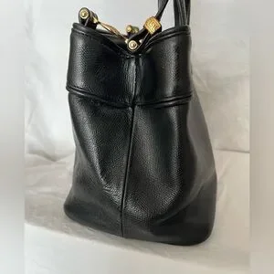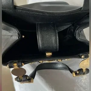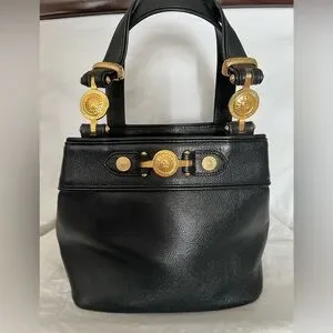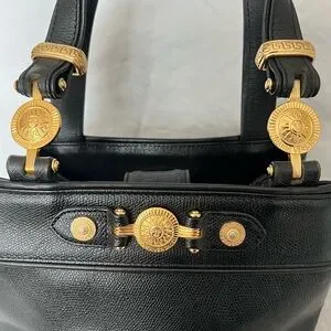 Authentic Vintage Gianni Versace blk leather bag with gold hardware