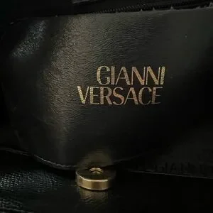 Beautiful bag in excellent condition, no stains or rips. Beautiful gold hardware with 1 interior zipper pocket. Leather flap in front of pocket with gold Gianni Versace label. Has magnetic closure. Has Gianni Versace wording on blk nylon lining inside.