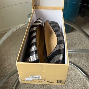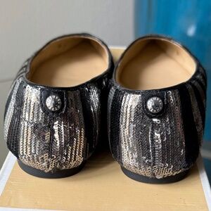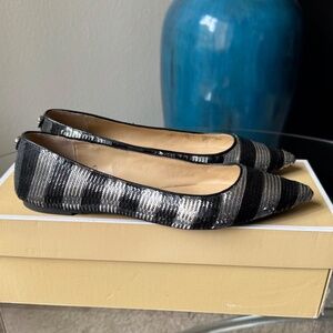 MICHAEL Michael Kors ARIANNA Black&Silver SEQUIN Stripe Flats = US6.5