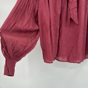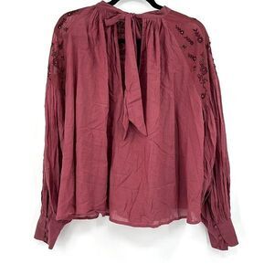 Free People Womens Red Long Puff Sleeve Beaded Embroidered Blouse Small