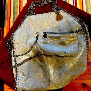 stella Mc Carney like new lg fold over or strap metallic bag