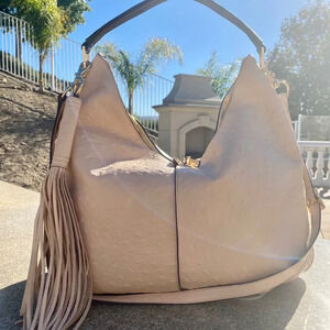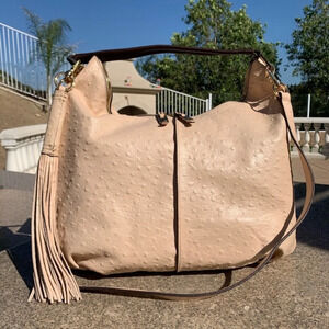 🔥🔥NEVER WORN, ITALIAN LEATHER OSTRICH EMBOSSED HOBO HANDBAG. COMES WITH SHOULDER STRAP AND STUNNING LONG TASSEL.