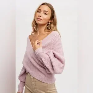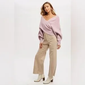 784. Crossover Ribbed Sweater in Lavender