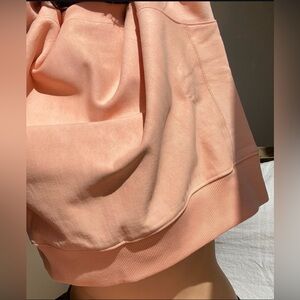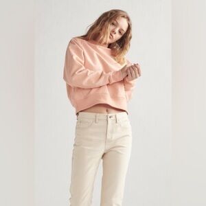 A simple, peach cropped crewneck sweatshirt. Crafted from the same jersey material as our best-selling hoodie, the classic varsity favorite gets a modern update with a slightly cropped silhouette and fresh new hues.
