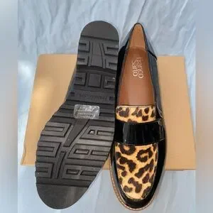 Franco Sarto Cheetah Patent Leather & Fur Penny Loafer Women's Size 10, brand new never worn!