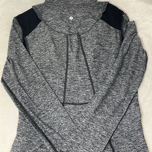 Lululemon “Run Your Heart Out” half-zip pullover hoodie in a stylish heathered gray with black accents, size 10. This hoodie is designed for runners and active individuals, featuring a half-zip front, high collar, and lightweight, breathable fabric to keep you comfortable during workouts or casual outings. Perfect for layering in cooler weather, it combines style and functionality. Excellent condition with no visible signs of wear. A fantastic addition to any activewear wardrobe!