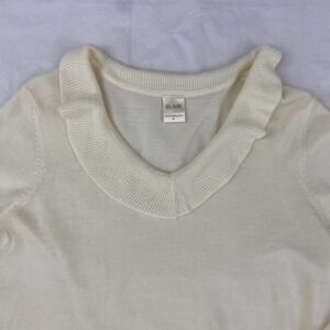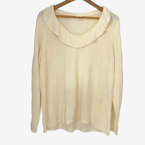 Women's Off White Sweater XL Vintage Blair Boutique Cottagecore Ruffle V- Neck