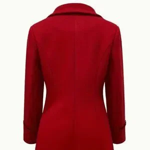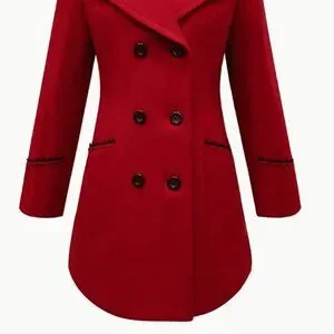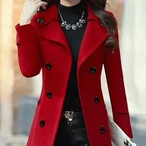 Red Elegant Women's Double-Breasted Lapel Coat