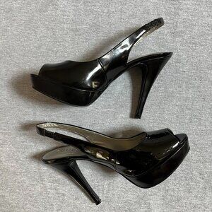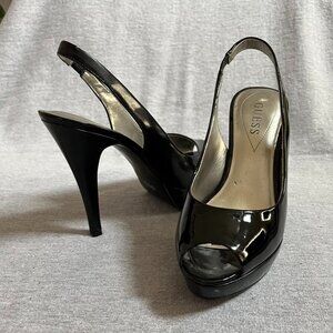 Guess Black Patent Leather Peep Toe Platform Heels