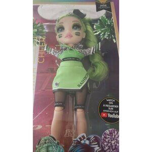 Listing is for a NEW in box Rainbow High Cheer Jade Hunter doll. Jade is a 10" doll and comes with her green cheer pom poms.