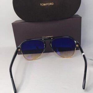 Tom Ford MARSHALL FT 0929 Shiny Black/Grey Brown Shaded 58/16/145 unisex Sunglasses Details Styled with gold accents surrounding the frame, these sunglasses are finished with the brand's signature T temple detail. Gradient lenses Plastic/polycarbonate Made in Italy SIZE 58mm lens width 16mm bridge width 145mm temple length
