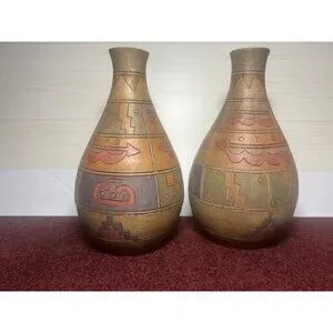 Elevate your decor with this exquisite pair of handcrafted pottery vases, featuring intricate Southwest-inspired designs, perfect for adding an artisanal touch to any space.